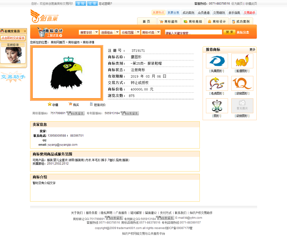 创意巢商标网是专业的商标交易平台, 支持C2C,和B2C的交易模式。